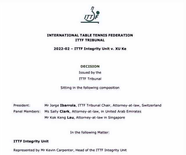 于是仲裁庭作出期限为10年禁赛的处罚,并条款徐克私费完成经乒联招供的栽种课程。