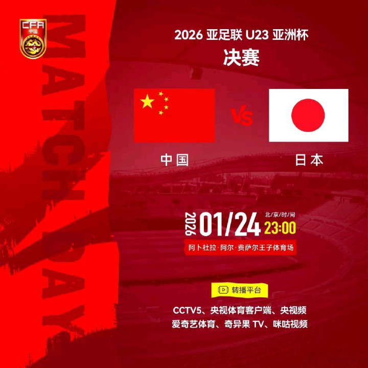 2026年U23亚洲杯决赛中国队迎战日本队的比赛预报出炉体育录像/图片