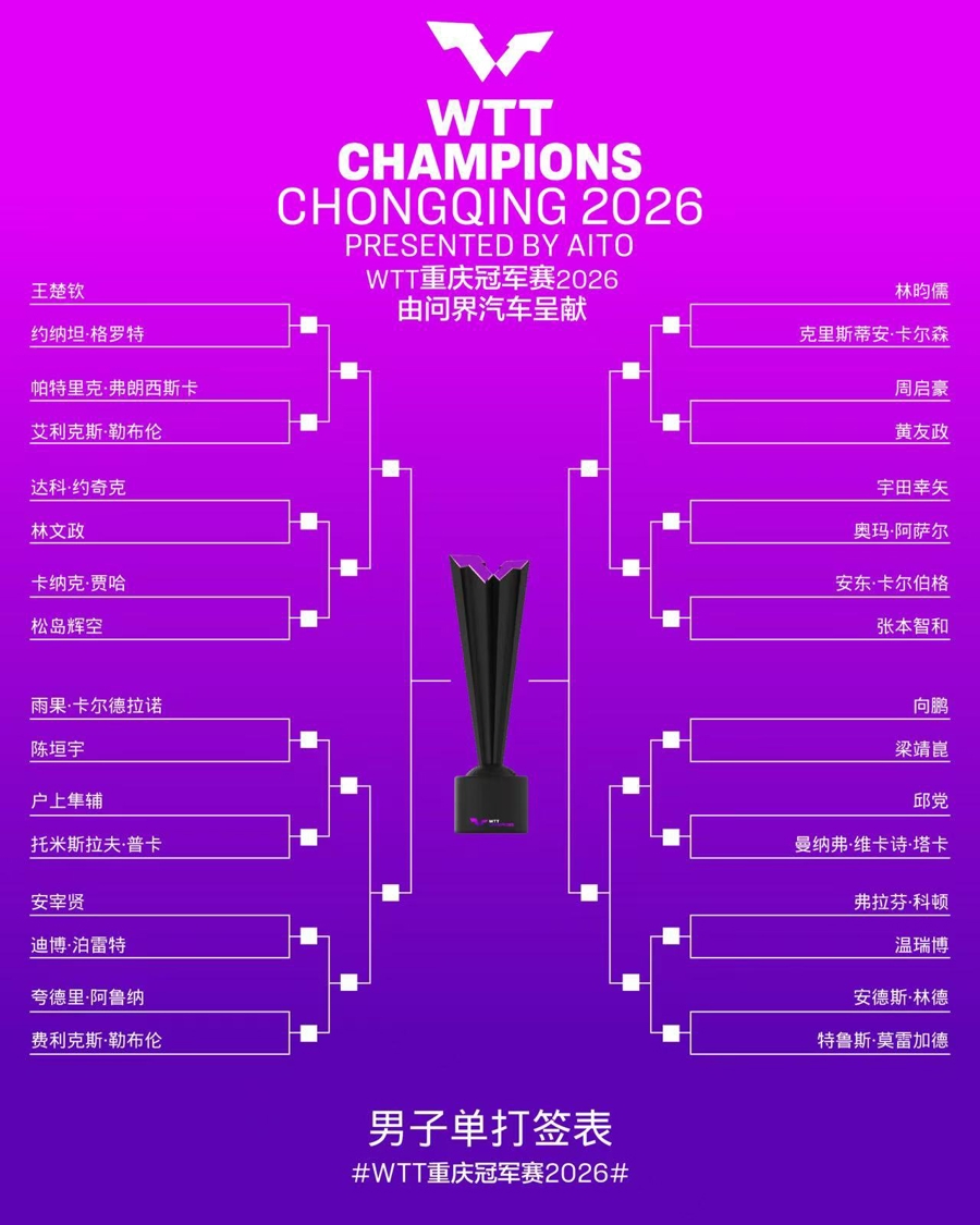 2026WTT重庆冠军赛将于3月10日拉开战幕,卫冕冠军王楚钦、孙颖莎领衔男乒7男7女的豪华声势出战。8日,对阵签表出炉, 国乒男队遇到“最狡滑分组”,两场内战将在首轮提前献艺。