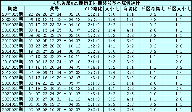 大乐透第2026025期历史同时号码分析: