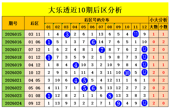 上期后区奖号为小大组合09、12