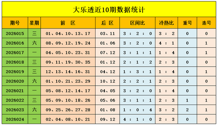 大乐透前区轮廓分析: